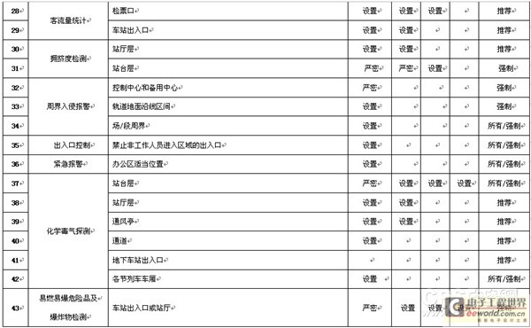 3.1摄像机要求和布置原则:车站一般平均配置有60-80台左右监控摄像机,甚至提出车站公共区域监控全覆盖,摄像机会安装更多,网络摄像机要求:高清分辨率1920×1080P、准高清分辨率1280×720P,SD/SDHC卡本地存储,日夜功能,双向语音。摄像机设置原则:看清目标前提下室内尽可能安装半球型网络摄像机,与装修环境能很好配合,好看,每侧站台配置4台网络高清1080P固定型摄像机,每部自动扶梯和楼梯配置1台高清1080P(或准高清720P)半球型摄像机,道闸、出入口、通道、综合控制室等配置网络高清1080P半球型摄像机,设备室、垂直电梯轿厢小范围采用网络高清720P半球型摄像机,站外配置1080P(720P)红外固定型和球型摄像机,室内公共区域配置1080P球型摄像机。要求一个人从进入地铁到出地铁至少有3次正面清晰的五官和体貌特征监控存储图像,便于追查嫌疑人,高清1080P网络摄像机无疑是最好的选择,宏观和微观都能看清楚。