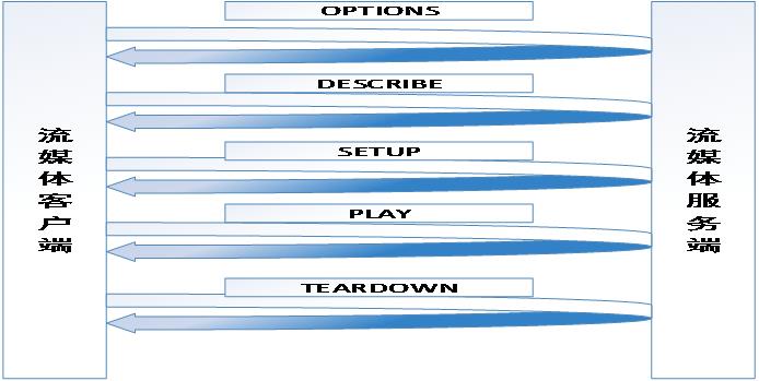 在多媒体流传输的过程中,播放器和服务器之间通过交换RTSP消息来实现资源描述信息的获取、连接的建立、播放控制等功能。RTSP协议采用请求/应答模式,服务器与客户端的简单交互如图3-1所示。