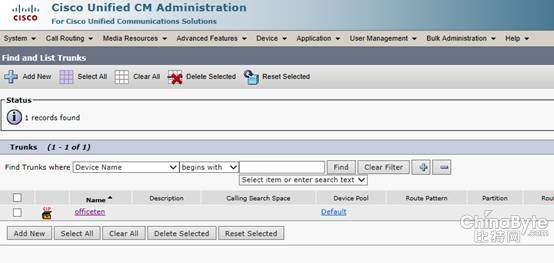 CCM无需做太多的修改,在原有的配置基础上,只需要添加一条SIP trunk与OfficeTen IPPBX对接,并按实际需求添加Call Routing。这里我们举例添加一条9开头的路由。