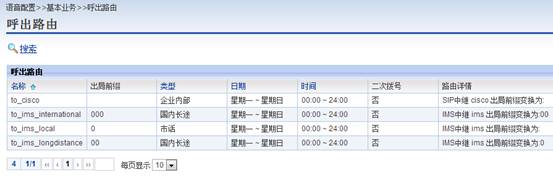 步骤五:配置路由。呼出路由需要配置市话、国内长途、国际长途到IMS,归属路由组from_cisco_to_ims;配置企业路由到CCM,归属路由组from_ims _to_cisco。思科ippbx