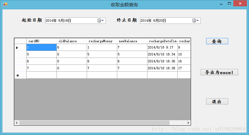 两种方法各有优缺点,我们需要根据自己的实际情况选择使用。当我们只需要显示整张表的数据或者表中数据不多的情况下,第一种方法最简单不过来,不需要写任何代码。如果我们希望数据有选择性的显示,比如上图中就只显示6月18日到6月20日期间的数据,通过写代码虽然貌繁琐,但是显示结果一目了然,避免了我们从大量数据中寻找我们需要的数据,大大提高了效率。datagridview 金额