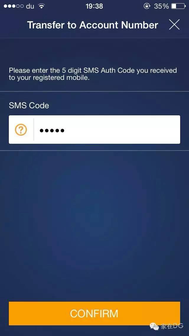 29、这时你会收到一条NBD银行发的安全码短信,输入安全码,点击CONFIRM(如下图);