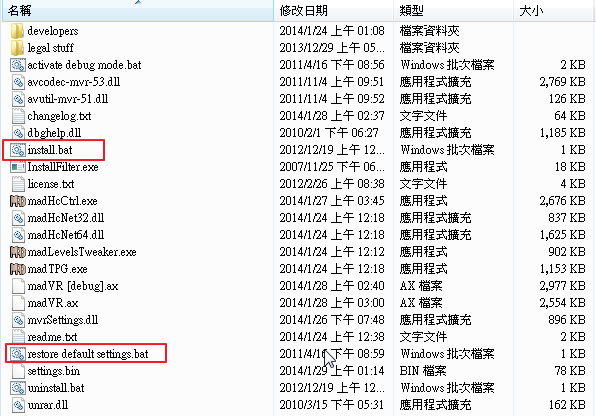 "restore default settings.bat"這個執行檔可回復所有的madVR設定到初始預設值,如果設定時亂了套或是出現問題,可以點擊這個執行檔,重新開始。