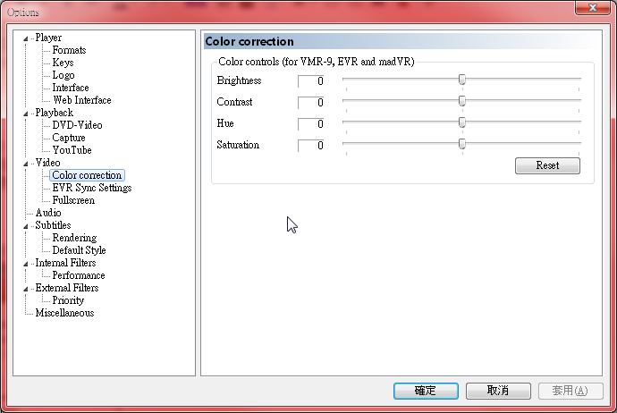 播放軟體的調整介面,效果同1.,不過調整結果對所有螢幕都會有作用,如下圖: