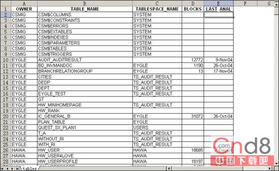-rw-r--r-- 1 oracle dba 69539 Apr 25 10:30 tables.xls