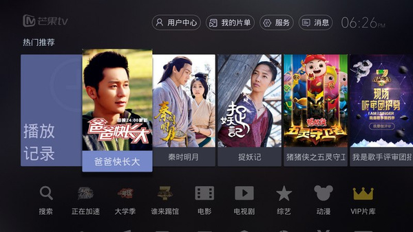 芒果TV作为湖南广电新媒体,拥有超百万小时的优质正版高清视频内容,是湖南卫视王牌综艺节目唯一互联网电视播映平台。除了爸爸去哪儿、快乐大本营、天天向上等超强独播资源之外,还吸纳了来自TVB、华谊兄弟、等好莱坞影业公司的黄金资源。