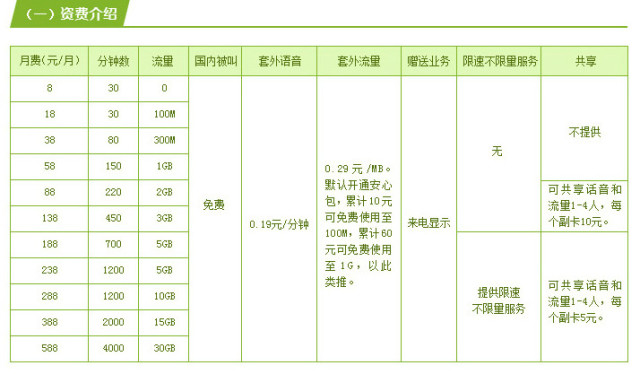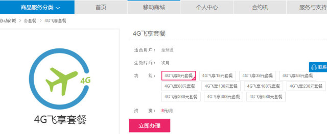 2018年1月初中国移动也按耐不住,推出月租8元的4G飞享套餐,只含有30分钟语音,没有流量,超过的语音1分钟要0.19元,超过的流量1MB要0.29元,唯一赠送的是来电显示。这个套餐明显是为那些想要抛弃移动逃到联通、电信怀抱的用户,有些人原先的手机号码使用时间很久,或是捆绑了很多账号,那么只能低资费保号了。