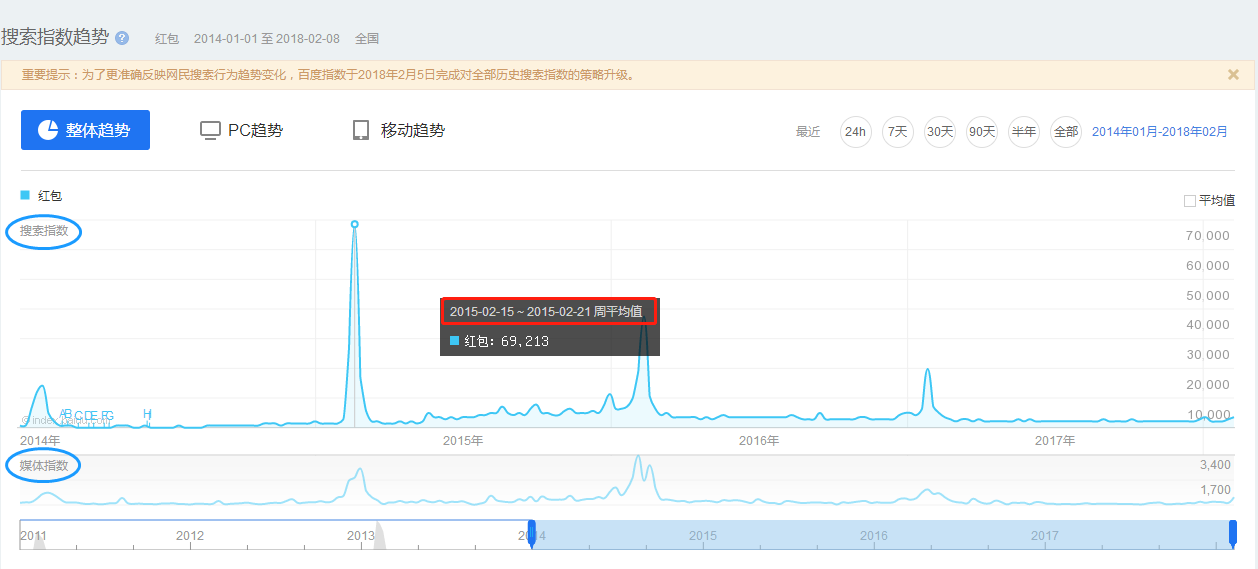 (百度指数2014至今“红包”关键词热度趋势)