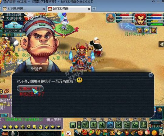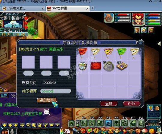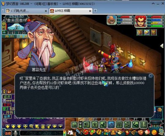 12、去傲来国酒店,找慕容先生,给他找12条对虾或者10万游戏币。梦幻西游新牧场产出楼主因为赶时间所以就任性了一把。直接丢他10万。